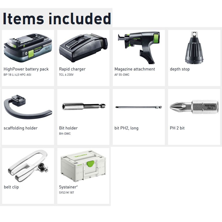 FESTOOL 576503 CORDLESS CONSTRUCTION SCREWDRIVER DURADRIVE DWC 18-4500 HPC 4,0 I-PLUS
