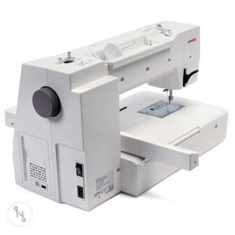 With the built-in embroidery unit, the Memory Craft 550E is ready to go. Logical programming guides the user quickly through the patterns of the Memory Craft 550E, suggests a whole range of variations in the Janome design assistant and makes operation extremely easy with display tips. The integrated embroidery library contains 180 embroidery motifs, including classic motifs, floral alphabets and Sachiko motifs, sorted by subject or frame size. Own designs can be imported via a USB stick. And best of all: the Memory Craft 550E has a large extension table, so large frames can be guided more easily and large embroidered items can be placed optimally.